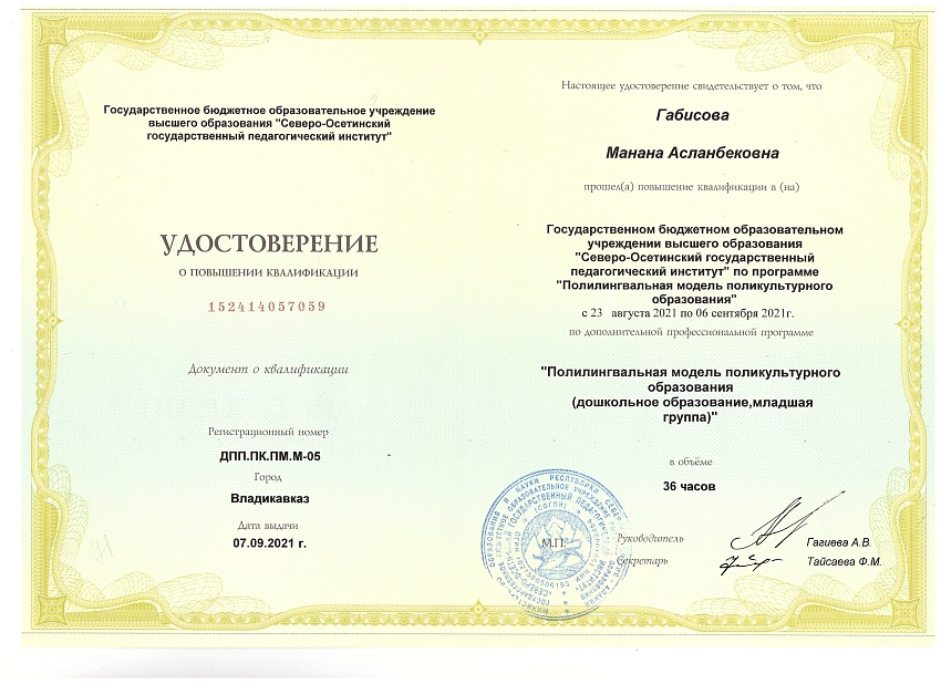 Удостоверение о повышении и квалификации Габисова